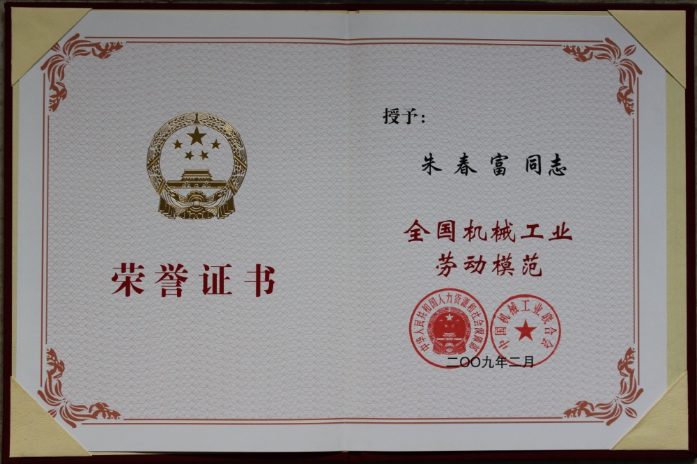 公司董事長朱春富榮獲“全國機械工業(yè)勞動模范”,公司開展實施的“國家進出口商品免驗企業(yè)”順利通過國家進出口商品檢驗檢疫總局專家組審查考核。